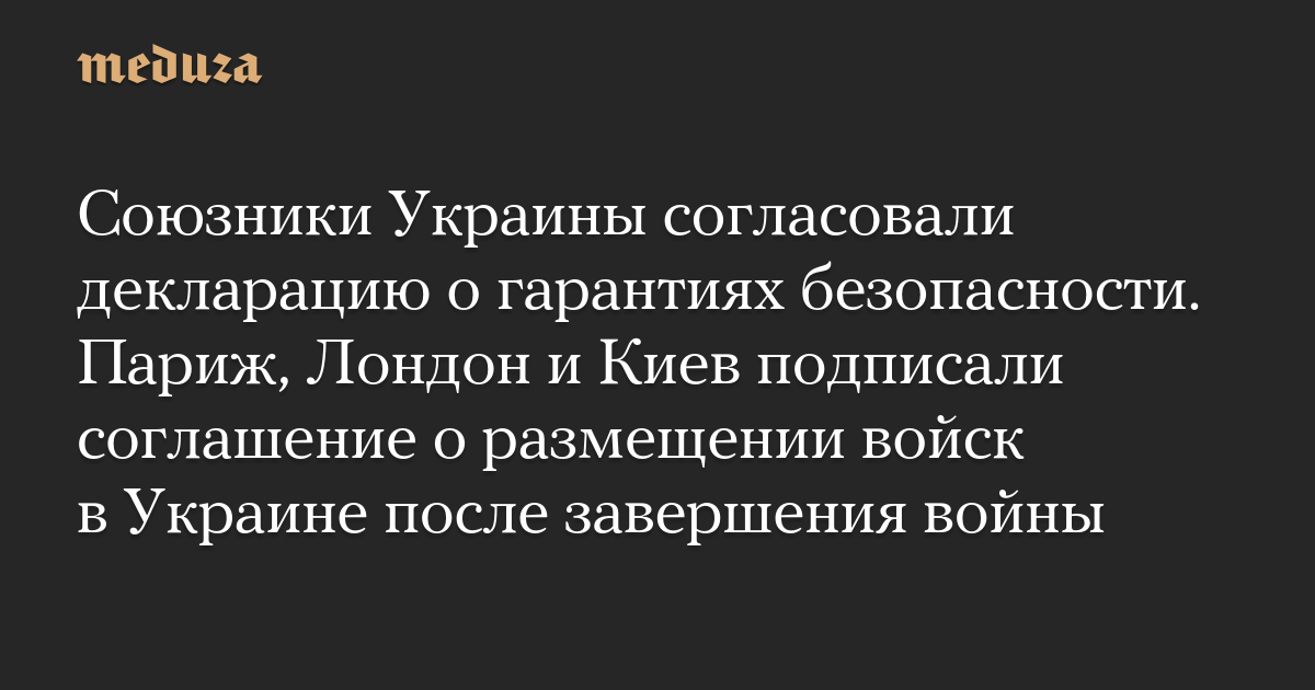 Союзники Украины согласовали декларацию о гарантиях безопасности. Париж, Лондон и Киев подписали соглашение о размещении войск в Украине после завершения войны