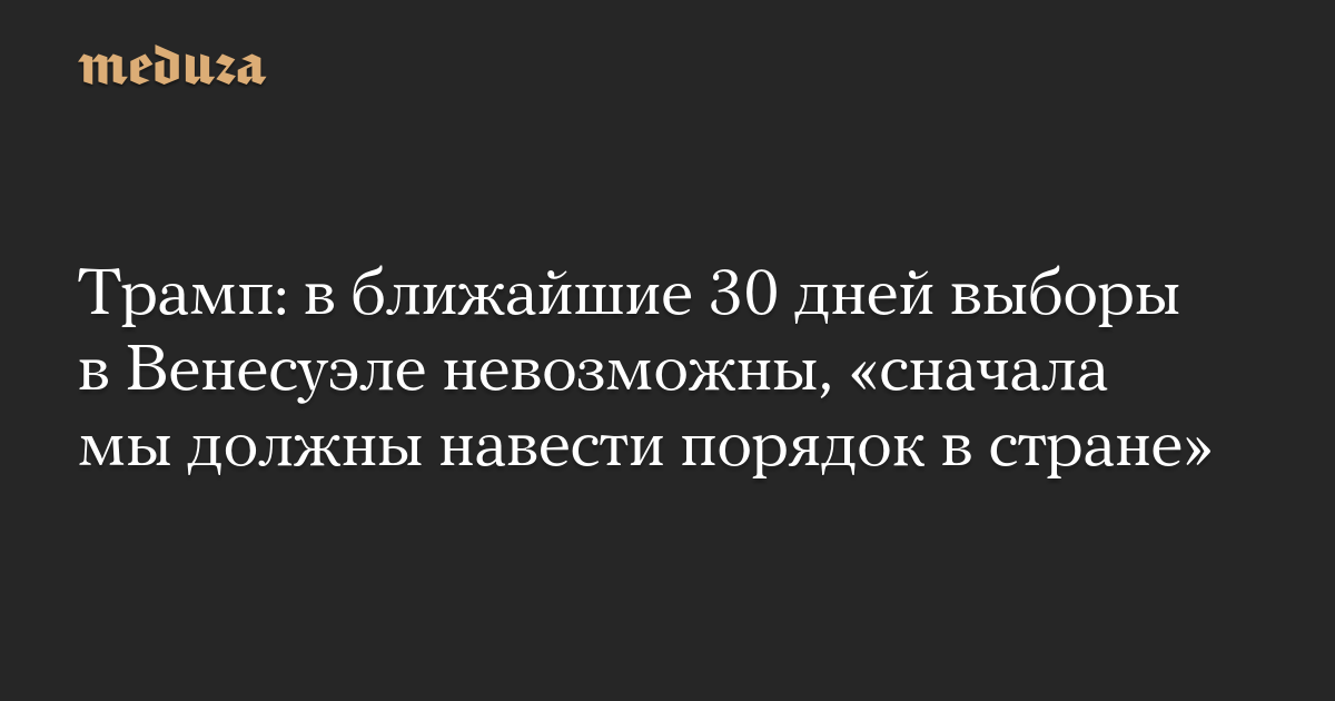 «Сначала мы должны навести порядок в стране Выборы невозможны. На это потребуется время», — сказал Трамп. Когда, по его мнению, выборы в Венесуэле станут возможны, он не уточнил.