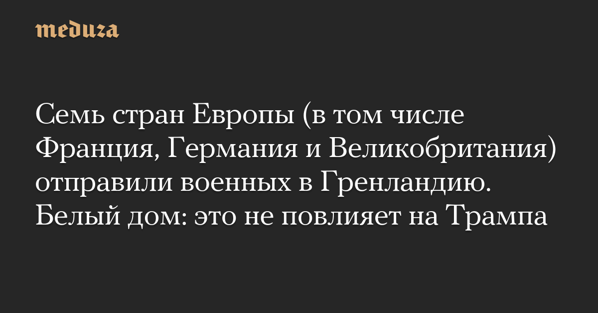 Семь стран Европы (в том числе Франция, Германия и Великобритания) отправили военных в Гренландию. Белый дом: это не повлияет на Трампа