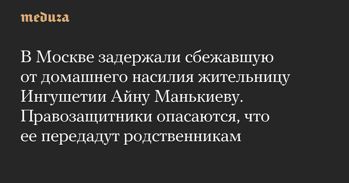 В Москве задержали сбежавшую от домашнего насилия жительницу Ингушетии Айну Манькиеву. Правозащитники опасаются, что ее передадут родственникам