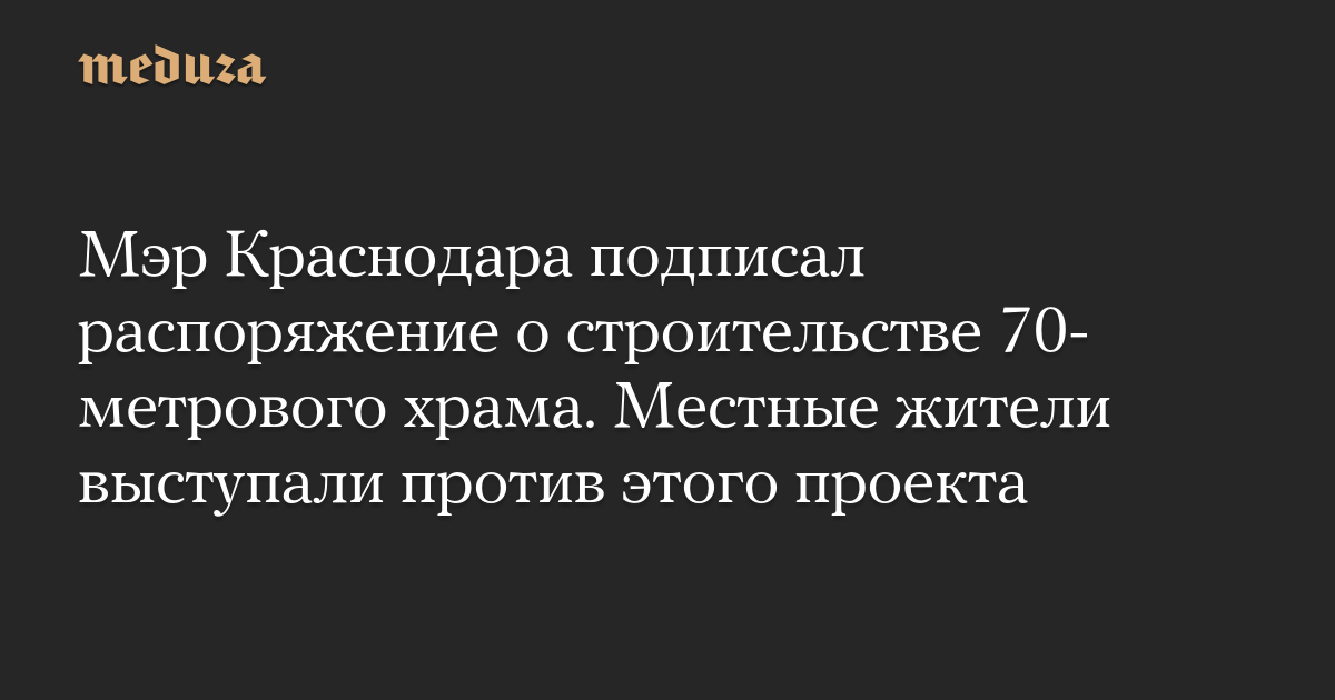 Мэр Краснодара подписал распоряжение о строительстве 70-метрового храма. Местные жители выступали против этого проекта