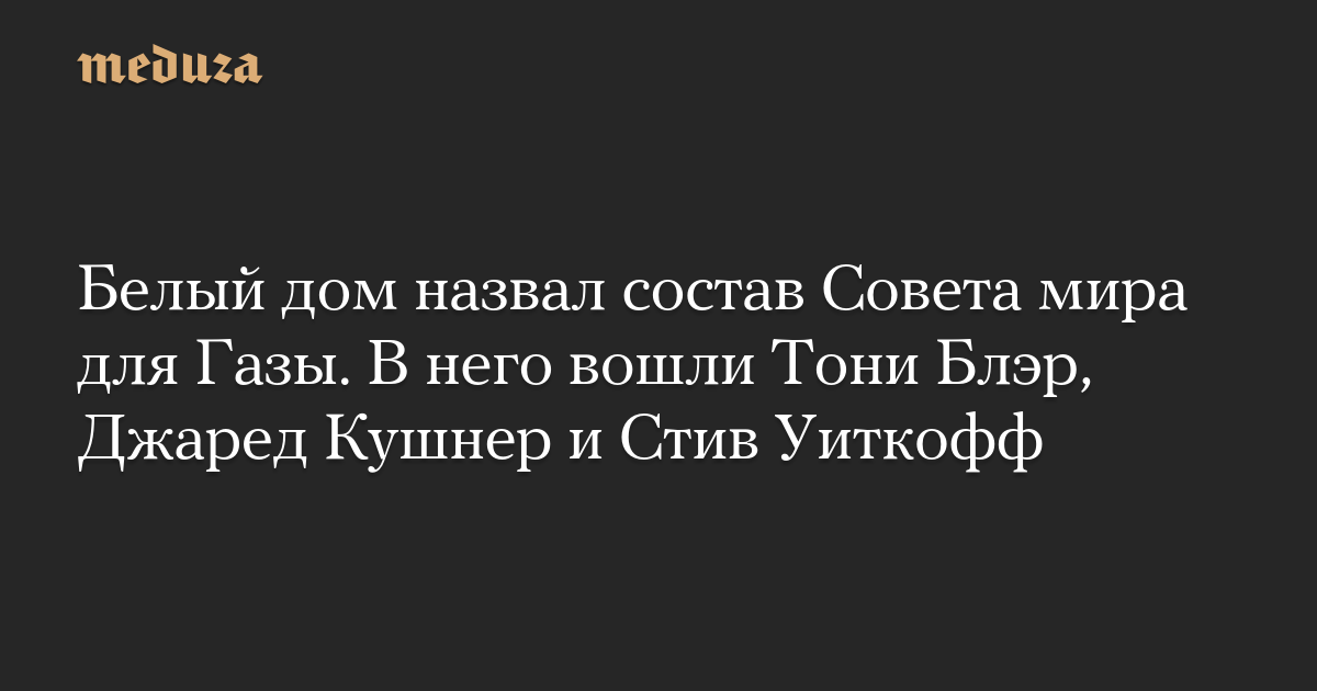 Белый дом назвал состав Совета мира для Газы. В него вошли Тони Блэр, Джаред Кушнер и Стив Уиткофф