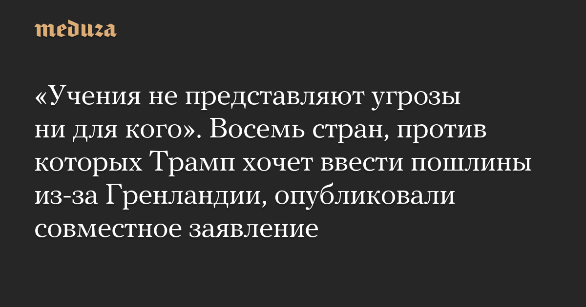 Восемь европейских стран опубликовали совместное заявление после угроз Трампа ввести пошлины против них из-за отправки военных в Гренландию.