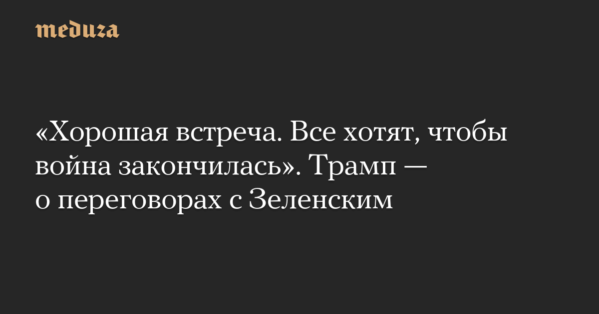 «Хорошая встреча. Все хотят, чтобы война закончилась». Трамп — о переговорах с Зеленским