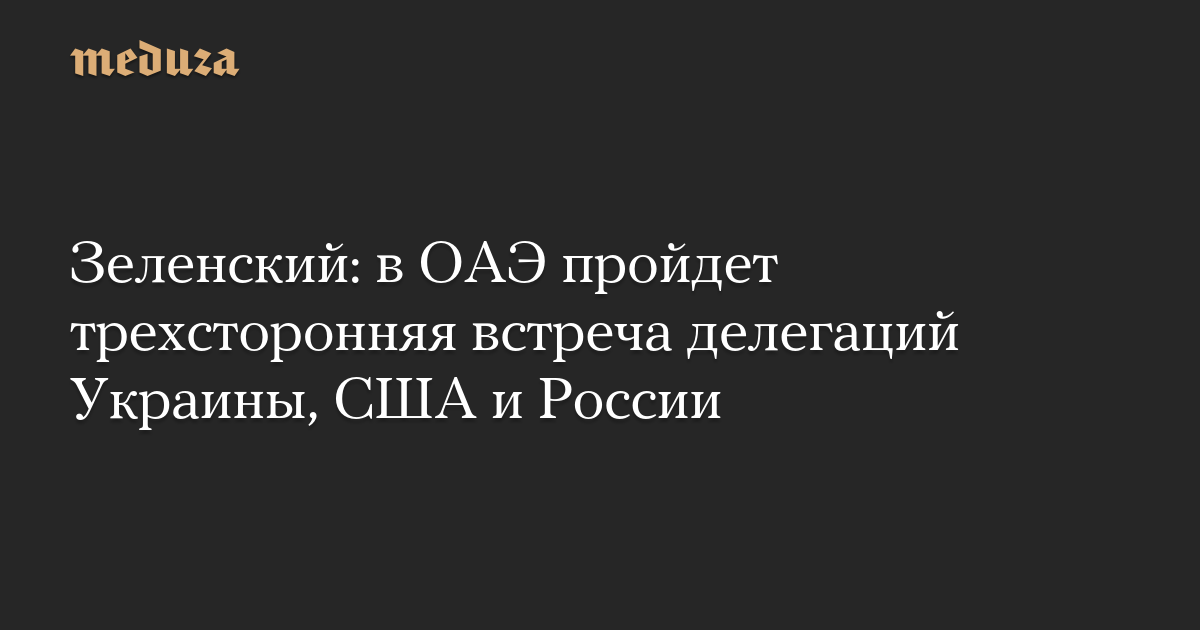 По данным журналистов Financial Times, на трехсторонней встрече в Абу-Даби, о которой заявил Зеленский, настаивают США. Украина предложение поддержала, но пока неясно, согласилась ли на переговоры Россия.