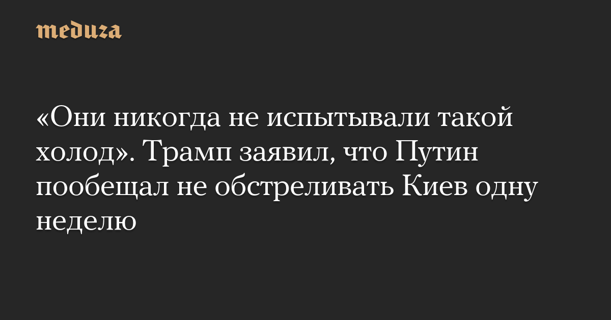 «Они никогда не испытывали такой холод». Трамп заявил, что Путин пообещал не обстреливать Киев одну неделю