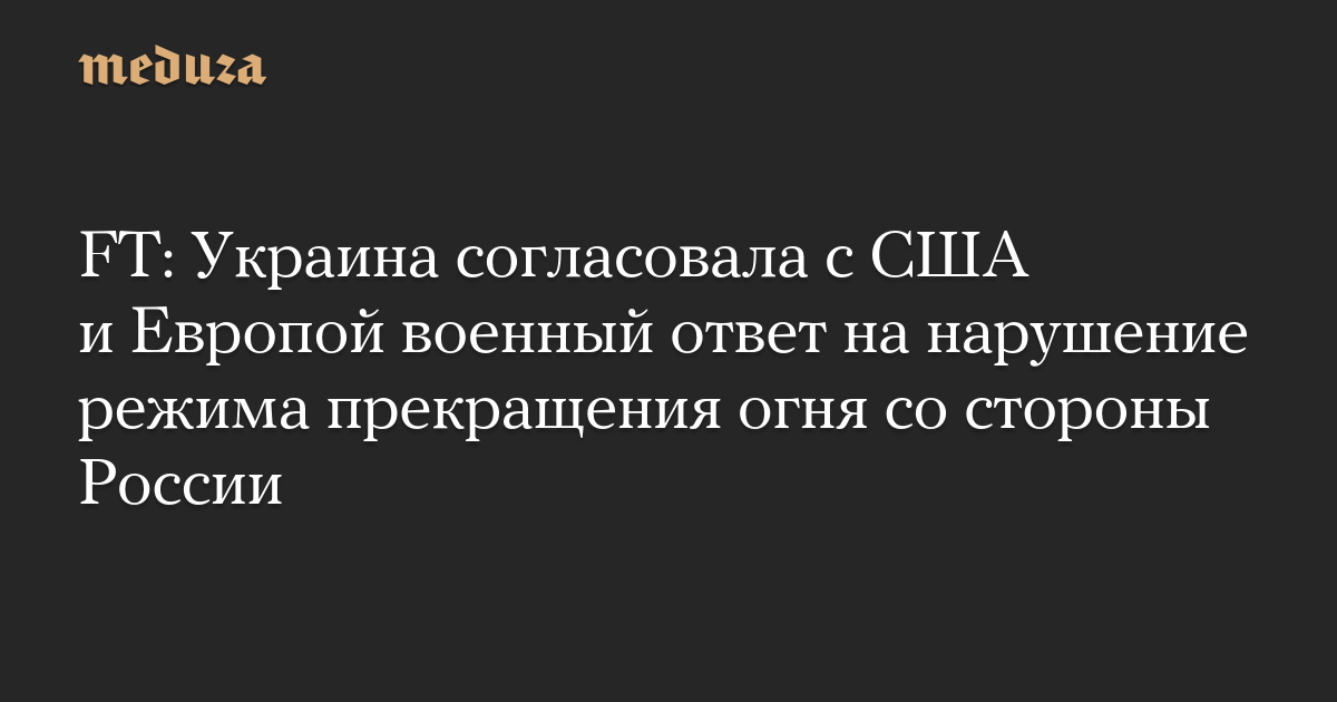 FT: Украина согласовала с США и Европой военный ответ на нарушение режима прекращения огня со стороны России