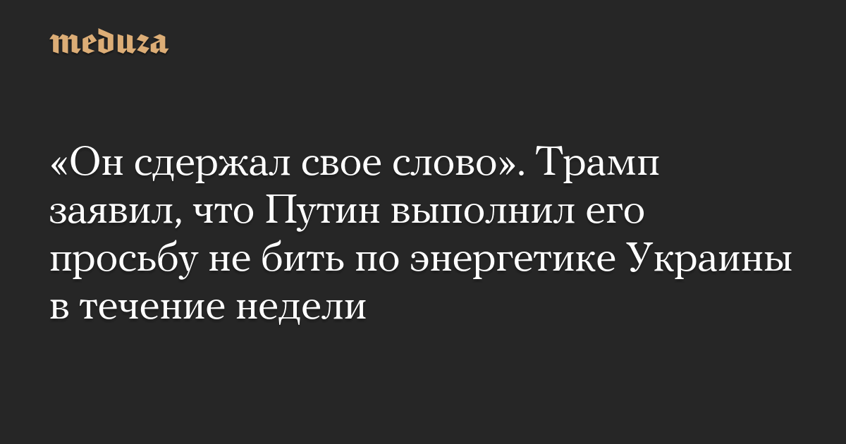 Владимир Путин сдержал свое обещание сделать паузу в нанесении ударов по энергетике Украины в холодную погоду, заявил Дональд Трамп, отвечая на вопросы журналистов в Белом доме.