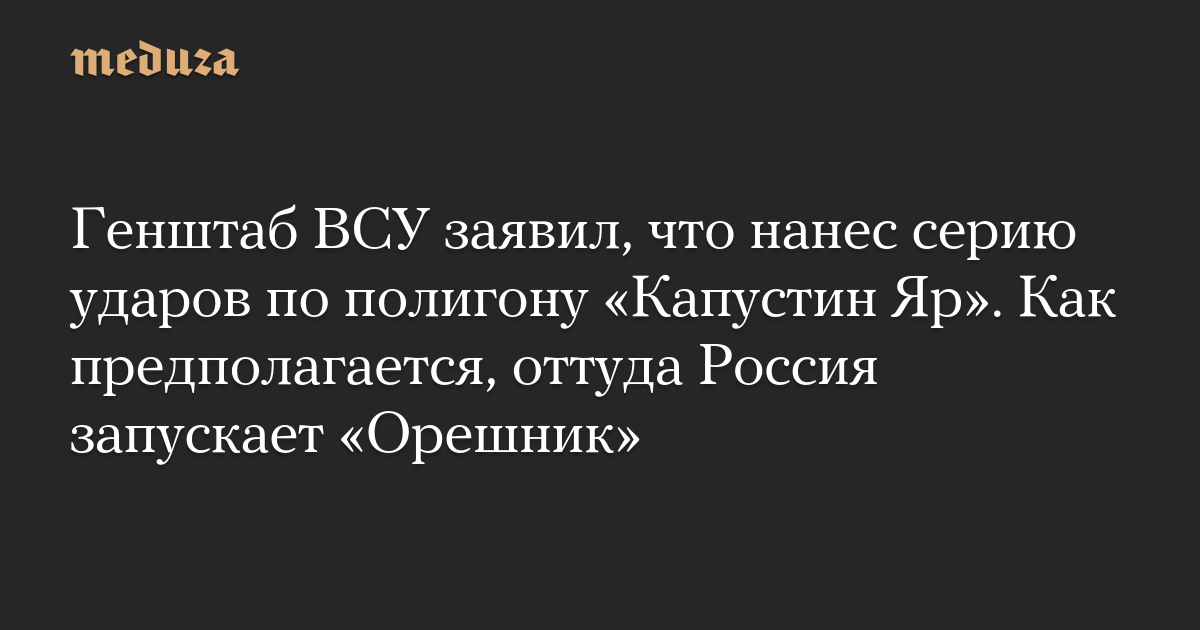 Генштаб ВСУ заявил, что нанес серию ударов по полигону «Капустин Яр». Как предполагается, оттуда Россия запускает «Орешник»