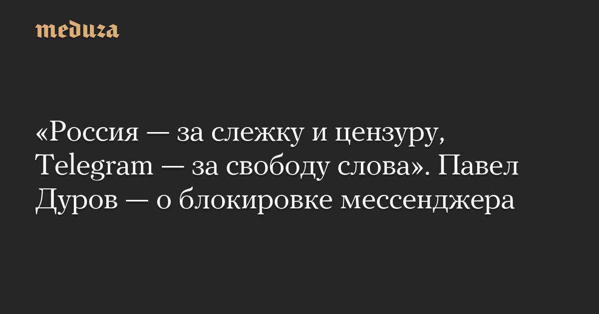 «Россия — за слежку и цензуру, Telegram — за свободу слова». Павел Дуров — о блокировке мессенджера