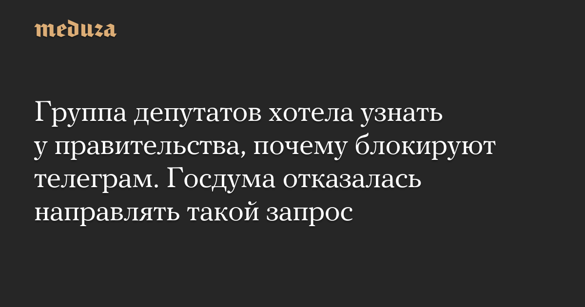 Группа депутатов хотела узнать у правительства, почему блокируют телеграм. Госдума отказалась направлять такой запрос
