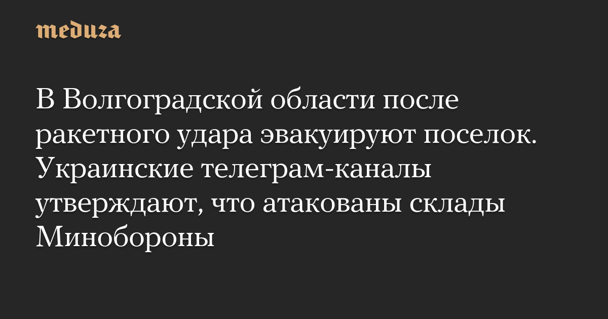 В Волгоградской области после ракетного удара эвакуируют поселок. Украинские телеграм-каналы утверждают, что атакованы склады Минобороны