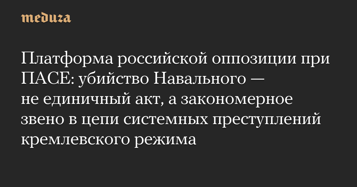 Платформа российской оппозиции при ПАСЕ: убийство Навального — не единичный акт, а закономерное звено в цепи системных преступлений кремлевского режима