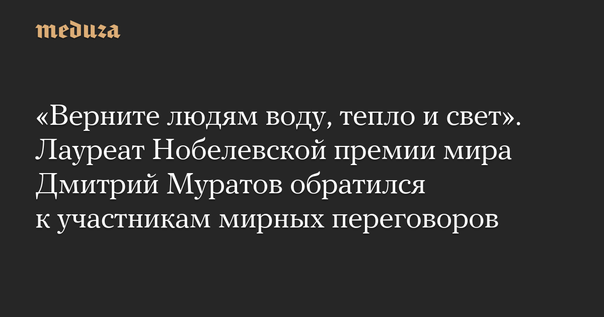 «Верните людям воду, тепло и свет». Лауреат Нобелевской премии мира Дмитрий Муратов обратился к участникам мирных переговоров