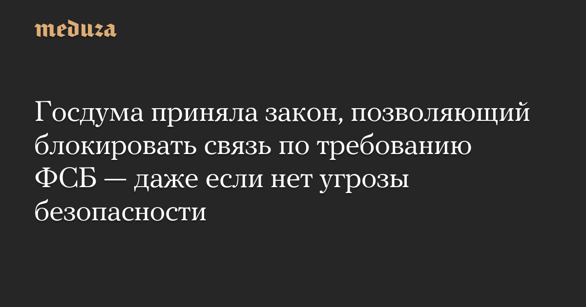 Госдума приняла закон, позволяющий блокировать связь по требованию ФСБ — даже если нет угрозы безопасности