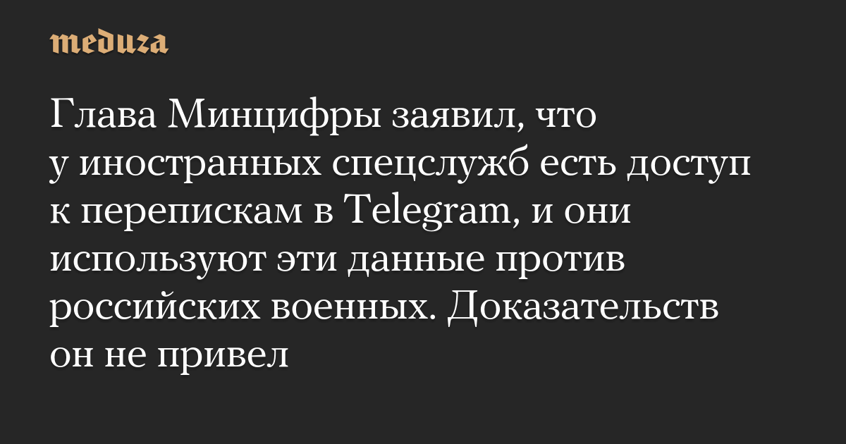Глава Минцифры заявил, что у иностранных спецслужб есть доступ к перепискам в Telegram, и они используют эти данные против российских военных. Доказательств он не привел