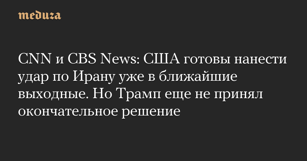 CNN и CBS News: США готовы нанести удар по Ирану уже в ближайшие выходные. Но Трамп еще не принял окончательное решение