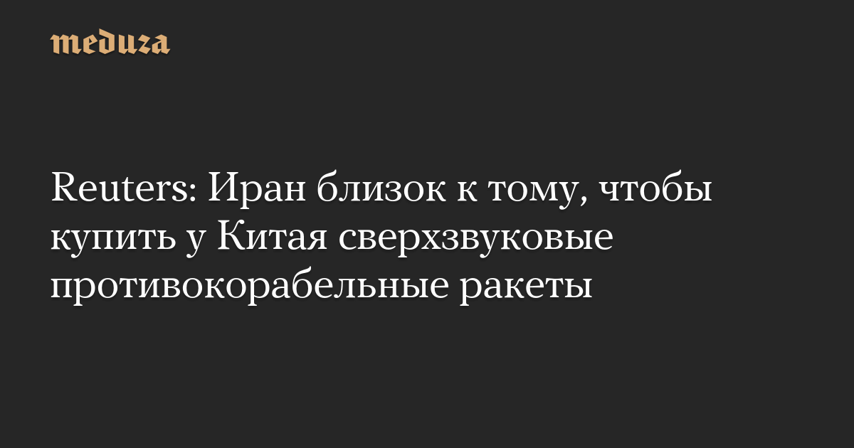 Власти Ирана близки к тому, чтобы заключить с Китаем соглашение о закупке сверхзвуковых противокорабельных крылатых ракет, сообщило 24 февраля агентство Reuters, ссылаясь на слова шести источников, знакомых с ходом переговоров. Независимых подтверждений этой информации нет.