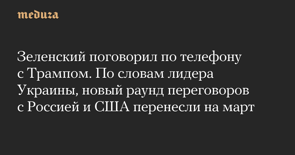 Зеленский поговорил по телефону с Трампом. По словам лидера Украины, новый раунд переговоров с Россией и США перенесли на март
