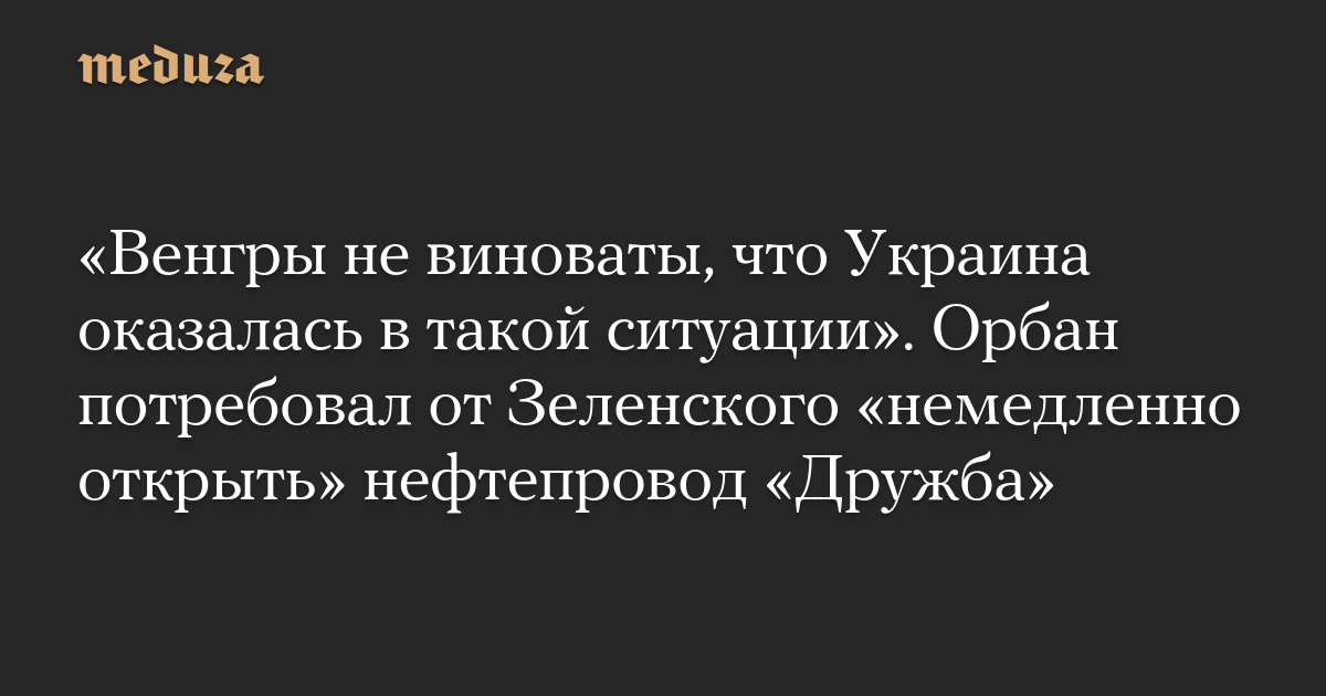 Орбан призвал Зеленского «немедленно открыть» нефтепровод «Дружба» и «воздержаться от дальнейших действий, угрожающих энергетической безопасности Венгрии».