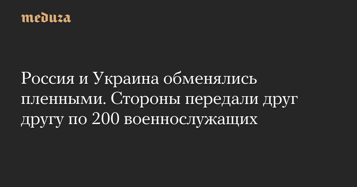 Россия и Украина провели обмен пленными — 200 на 200 человек, сообщили в российском Минобороны.