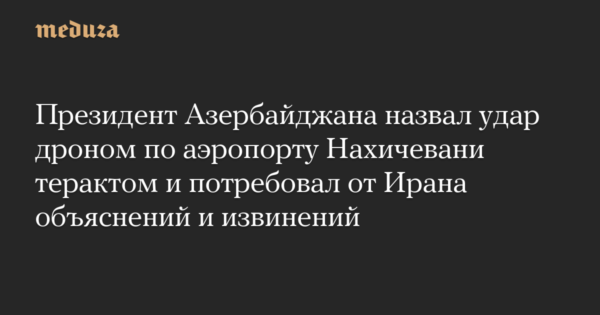 Президент Азербайджана назвал удар дроном по аэропорту Нахичевани терактом и потребовал от Ирана объяснений и извинений