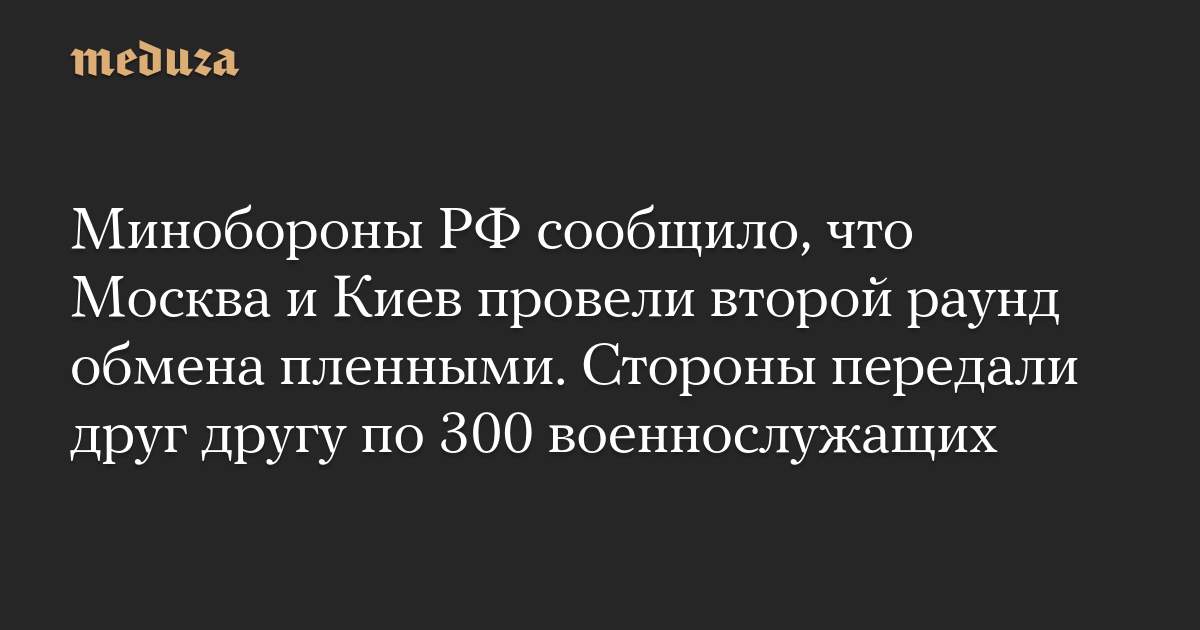 Минобороны РФ сообщило, что Москва и Киев провели второй раунд обмена пленными. Стороны передали друг другу по 300 военнослужащих