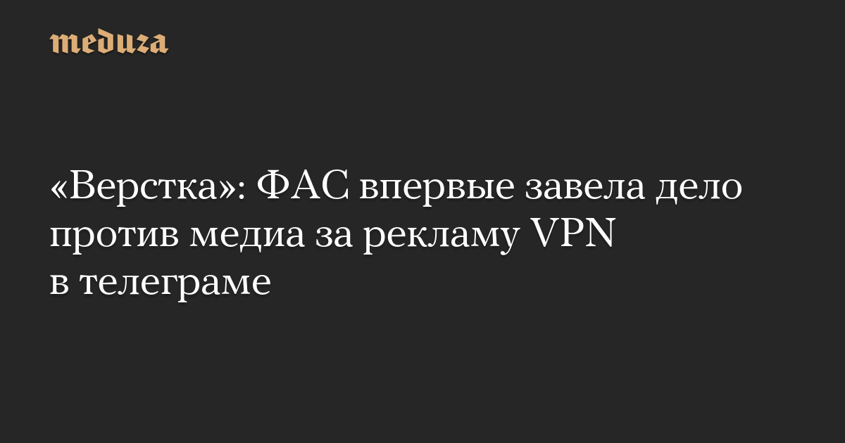 «Верстка»: ФАС впервые завела дело против медиа за рекламу VPN в телеграме