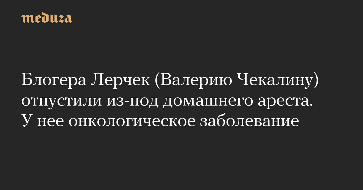Блогера Лерчек (Валерию Чекалину) отпустили из-под домашнего ареста. У нее онкологическое заболевание