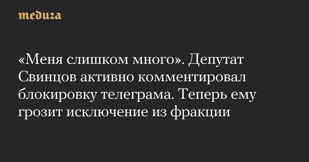 «Меня слишком много». Депутат Свинцов активно комментировал блокировку телеграма. Теперь ему грозит исключение из фракции