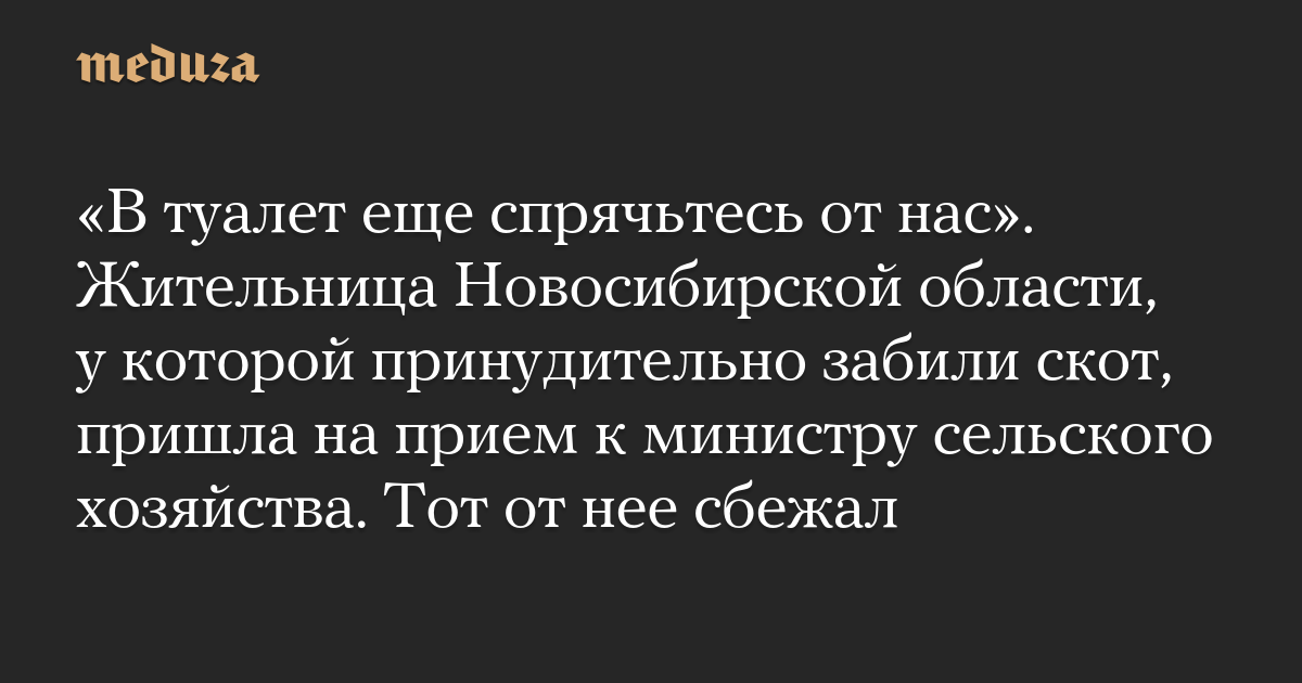 «В туалет еще спрячьтесь от нас». Жительница Новосибирской области, у которой принудительно забили скот, пришла на прием к министру сельского хозяйства. Тот от нее сбежал