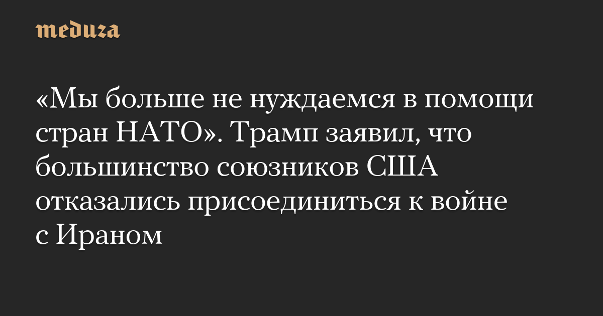 «Мы больше не нуждаемся в помощи стран НАТО». Трамп заявил, что большинство союзников США отказались присоединиться к войне с Ираном
