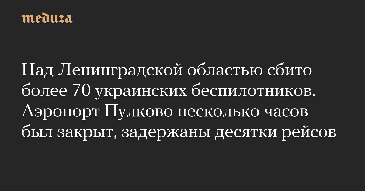 Над Ленинградской областью сбито более 70 украинских беспилотников. Аэропорт Пулково несколько часов был закрыт, задержаны десятки рейсов