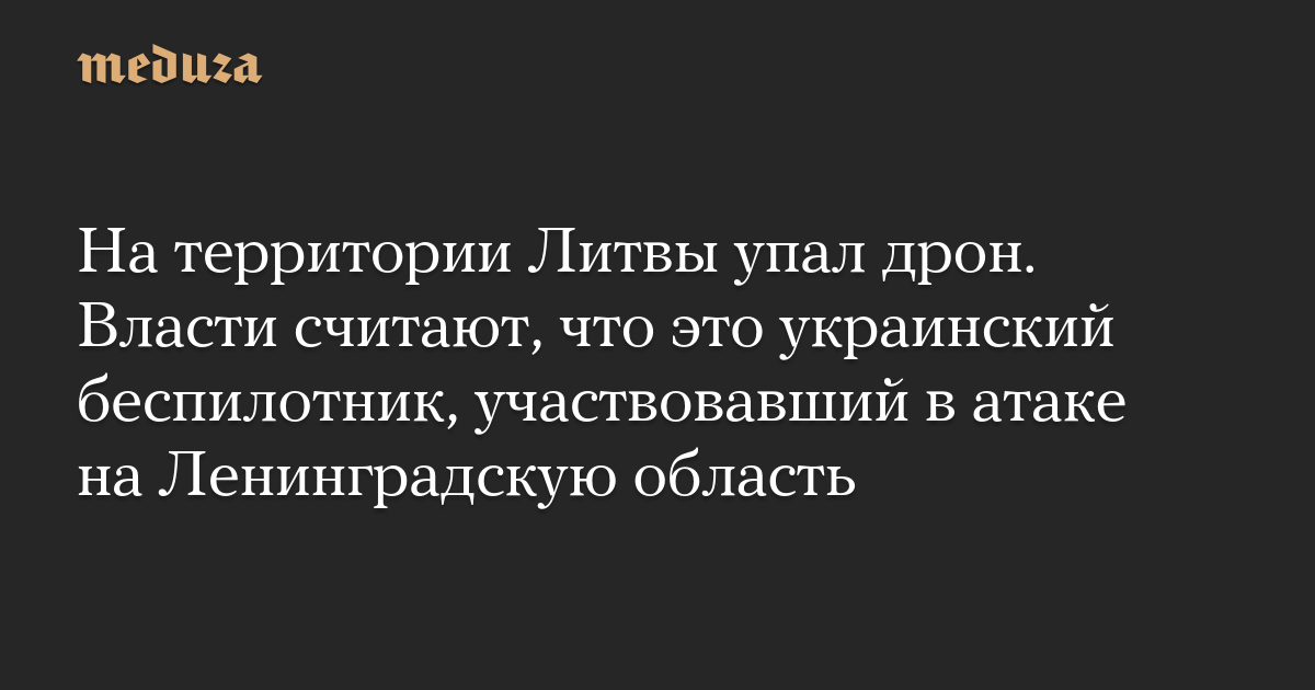 На территории Литвы упал дрон. Власти считают, что это украинский беспилотник, участвовавший в атаке на Ленинградскую область