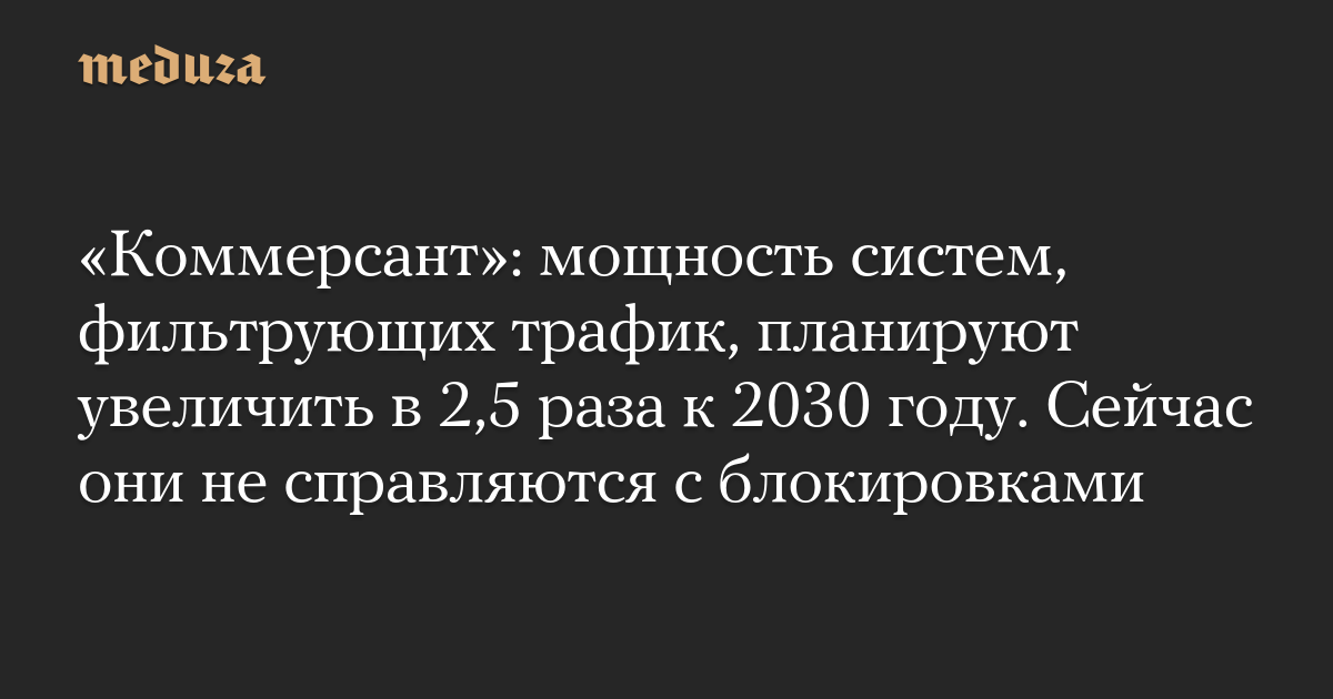 «Коммерсант»: мощность систем, фильтрующих трафик, планируют увеличить в 2,5 раза к 2030 году. Сейчас они не справляются с блокировками