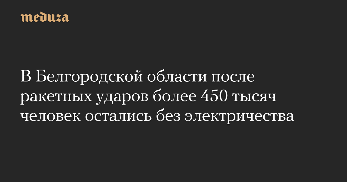 В результате украинских ракетных ударов по Белгородской области в ночь на 25 марта без электричества остались около 450 тысяч человек, сообщил глава региона Вячеслав Гладков.