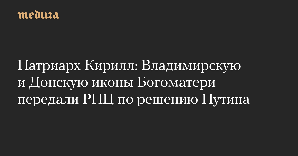 Патриарх Кирилл сообщил, что решение о передаче РПЦ Владимирской и Донской икон Богоматери принял президент России Владимир Путин. Об этом он рассказал 4 апреля на богослужении в московском храме Христа Спасителя.