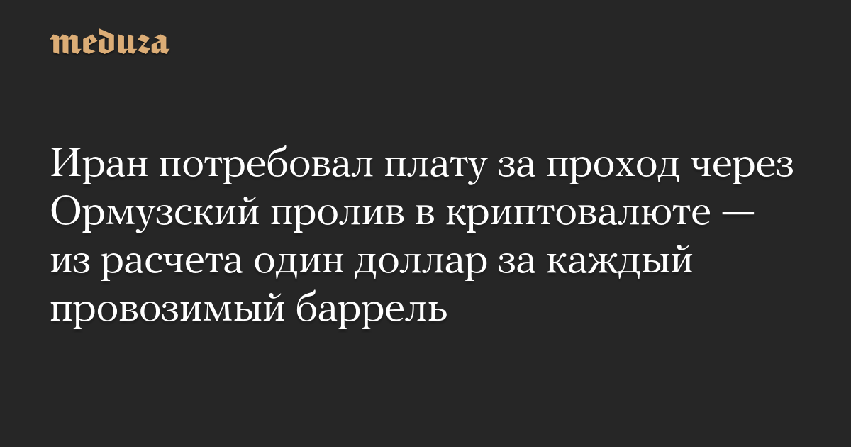 Иран потребовал плату за проход через Ормузский пролив в криптовалюте — из расчета один доллар за каждый провозимый баррель