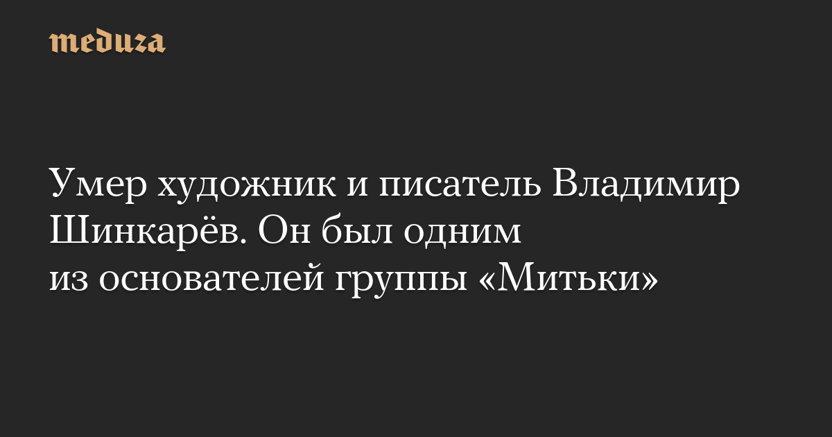 В Петербурге в возрасте 72 лет умер советский и российский художник, писатель, идеолог «Митьков» Владимир Шинкарёв, сообщили художники Ольга Тобрелутс и Дмитрий Шагин.
