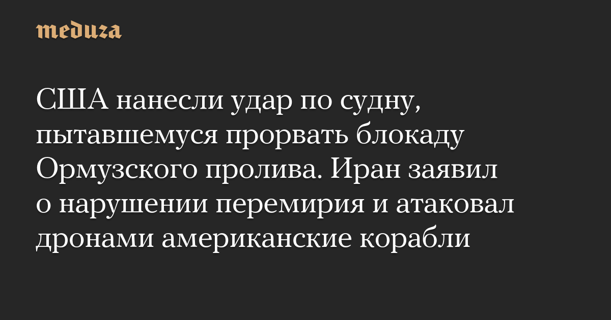 США нанесли удар по судну, пытавшемуся прорвать блокаду Ормузского пролива. Иран заявил о нарушении перемирия и атаковал дронами американские корабли