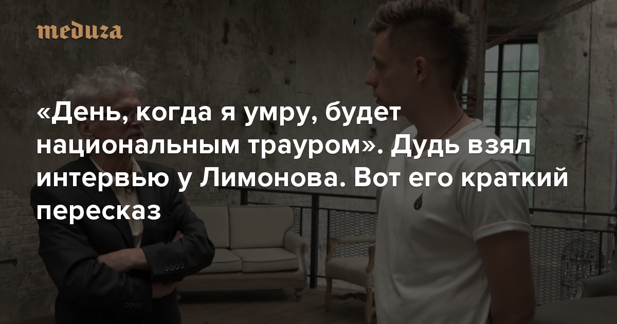 «День, когда я умру, будет национальным трауром» Дудь взял интервью у Лимонова. Вот его краткий пересказ