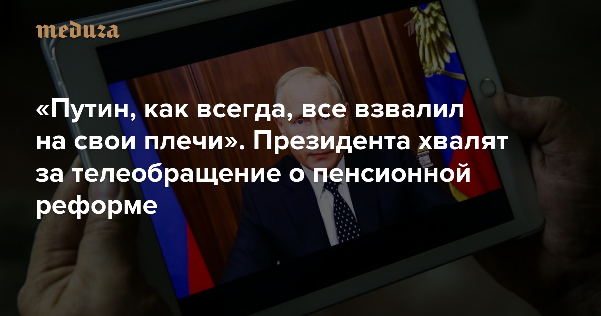 «Путин, как всегда, все взвалил на свои плечи». Президента хвалят за телеобращение о пенсионной реформе