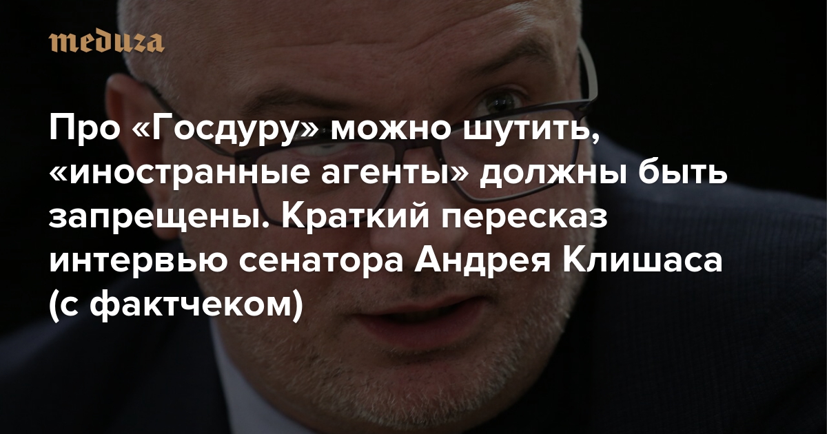 Про «Госдуру» можно шутить, «иностранные агенты» должны быть запрещены. Краткий пересказ интервью сенатора Андрея Клишаса (с фактчеком)