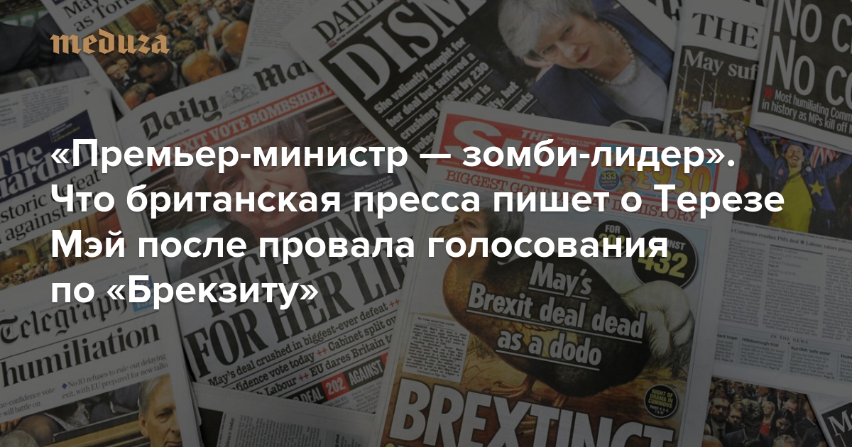 «Премьер-министр — зомби-лидер». Что британская пресса пишет о Терезе Мэй после провала голосования по «Брекзиту» Ее не пожалели ни противники, ни сторонники