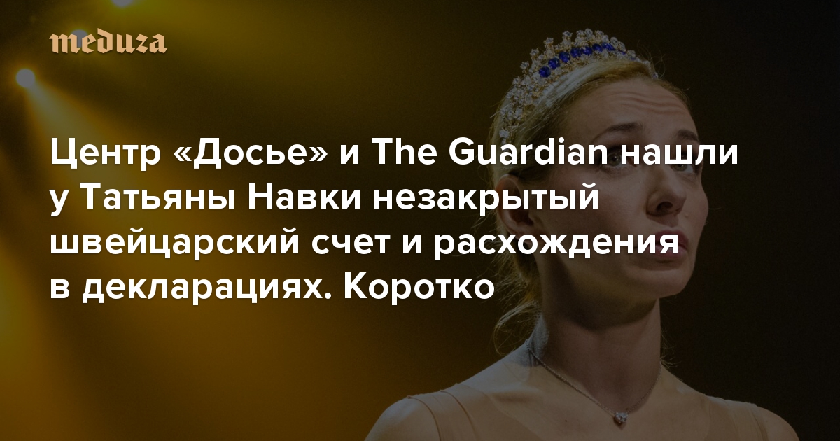 Центр «Досье» и The Guardian нашли у Татьяны Навки незакрытый швейцарский счет и расхождения в декларациях. Коротко