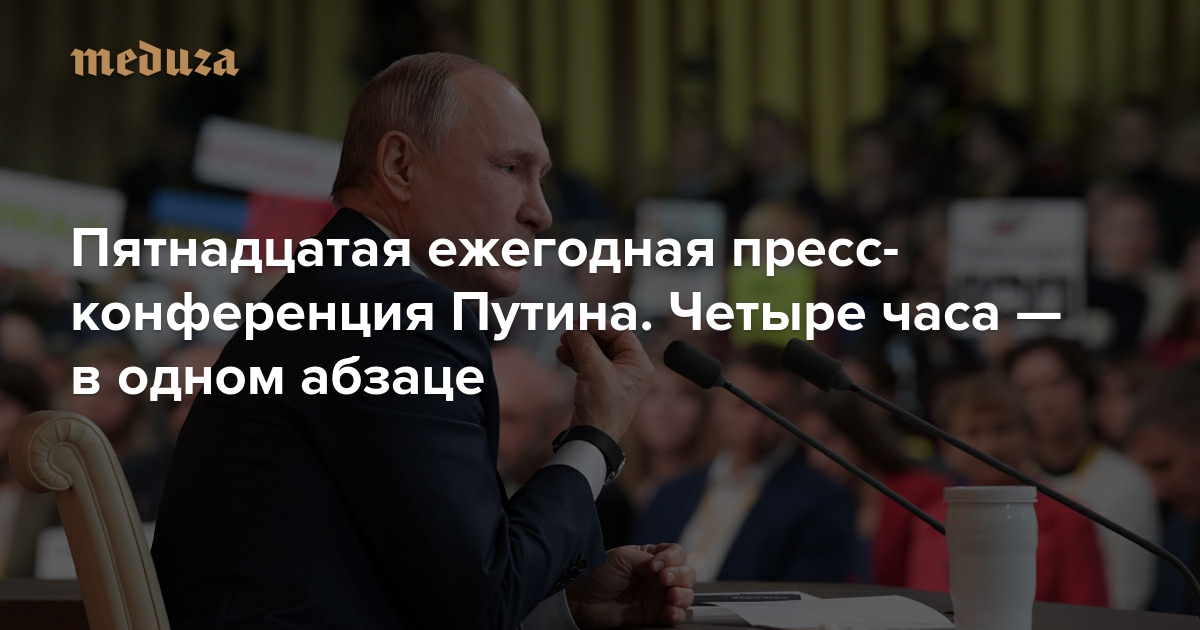 Пятнадцатая ежегодная пресс-конференция Путина длилась четыре часа. Вы можете прочитать ее пересказ за 40 секунд