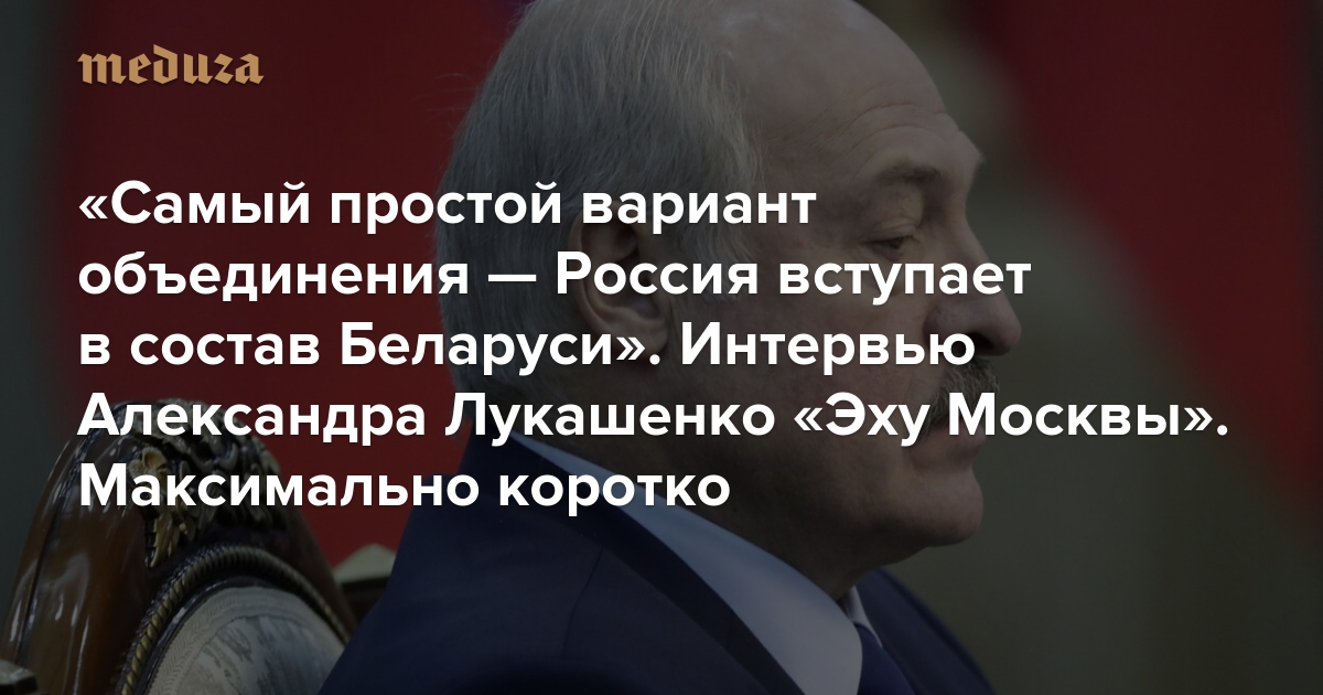 «Самый простой вариант объединения — Россия вступает в состав Беларуси» Интервью Александра Лукашенко «Эху Москвы». Максимально коротко