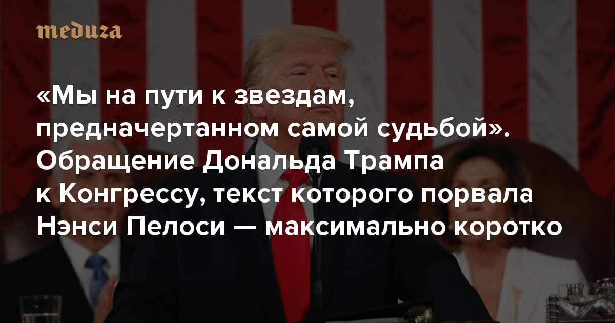 «Мы на пути к звездам, предначертанном самой судьбой». Обращение Дональда Трампа к Конгрессу, текст которого порвала Нэнси Пелоси — максимально коротко