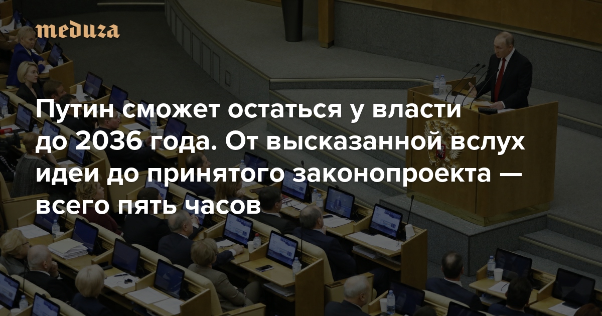 Путин сможет остаться у власти до 2036 года. От высказанной вслух идеи до принятого законопроекта — всего пять часов Как прошел один день в Госдуме