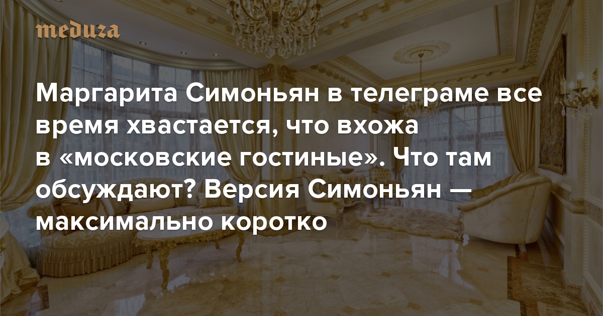 Маргарита Симоньян в телеграме все время хвастается, что вхожа в «московские гостиные». Что там обсуждают? Версия Симоньян — максимально коротко